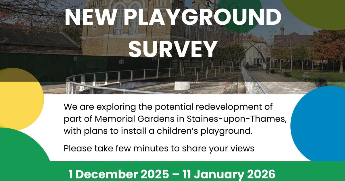 Cllr Malcolm Beecher, Chair of Spelthorne Borough Council’s Environment and Sustainability Committee, said: “We want Memorial Gardens to remain a welcoming space for everyone. A playground could provide families with a safe and enjoyable environment, but your views are essential in shaping this proposal.”