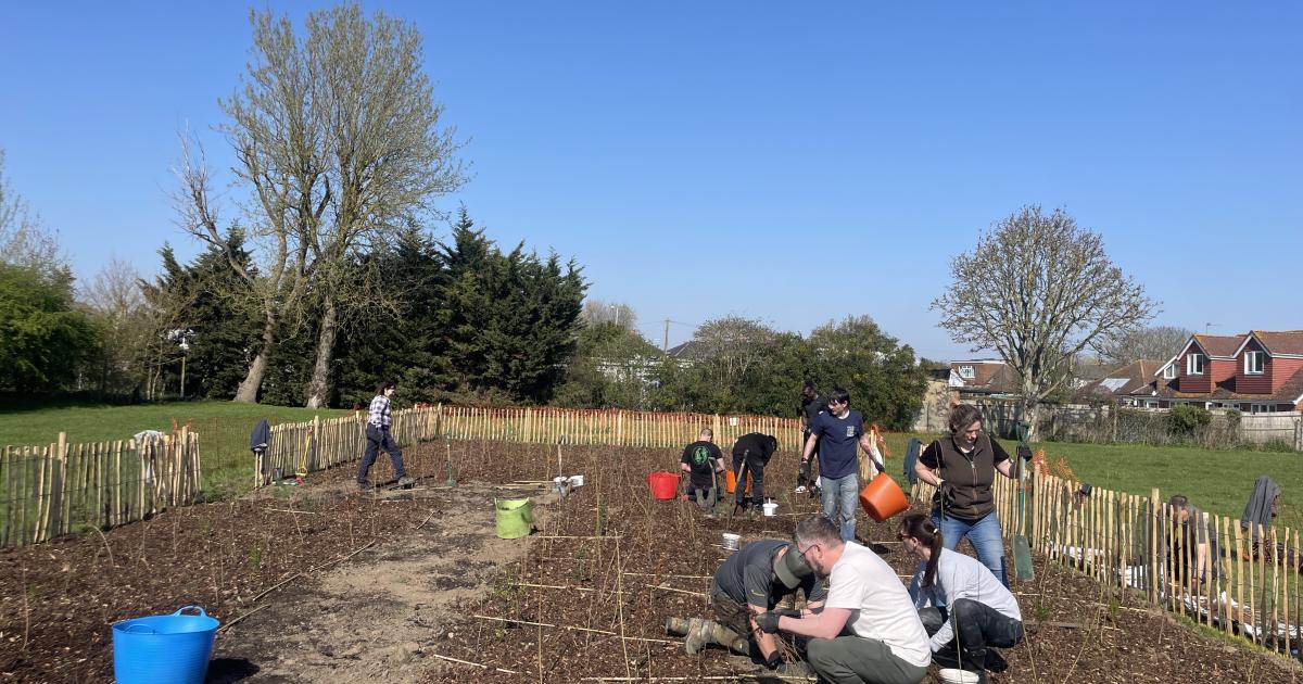 At Littleton Recreation Ground, 1,010 native tree and shrub whips from 25 species were planted during the week of 23 February. A community planting day brought together 28 volunteers from local groups, businesses and the wider community.